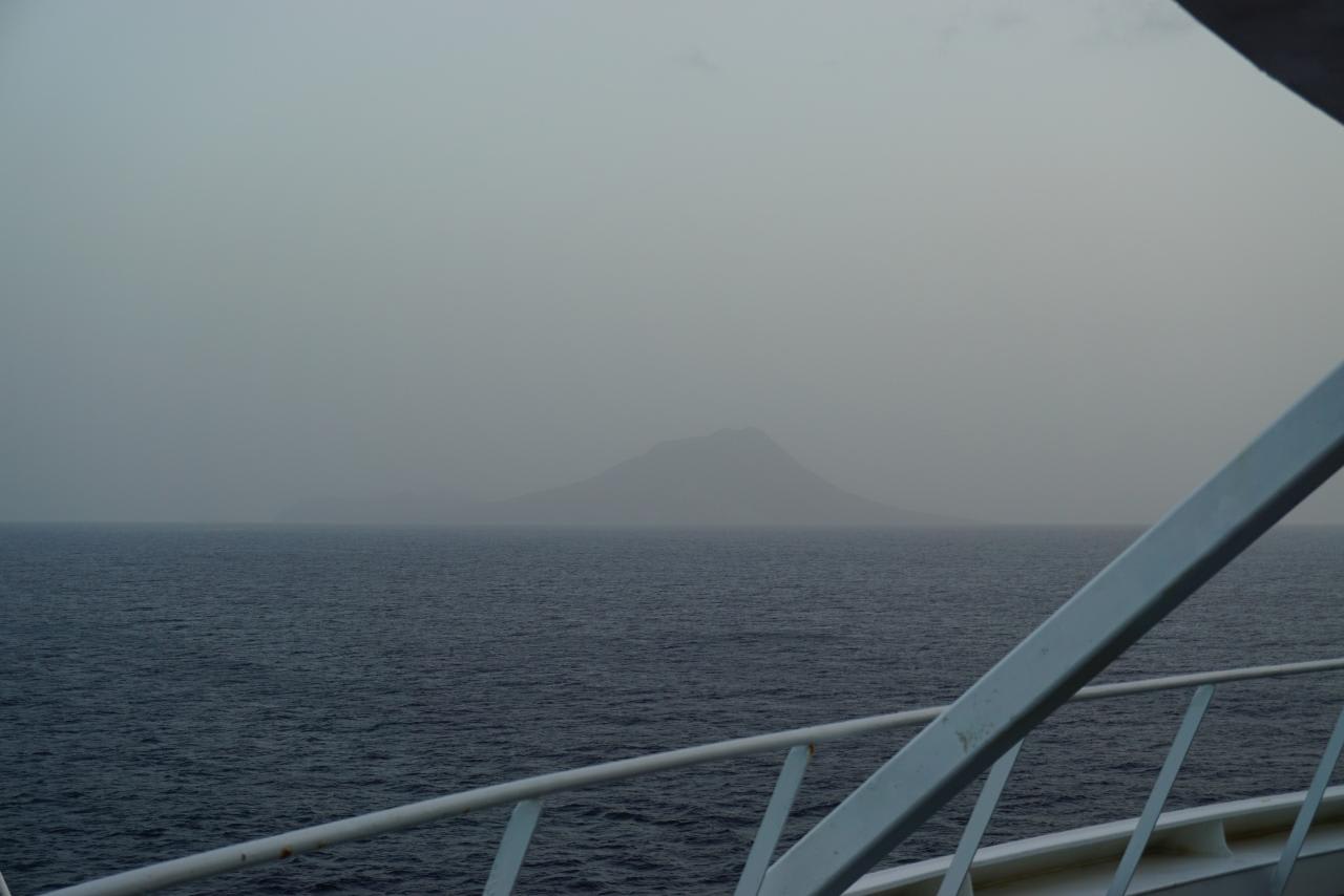 オランダ領・西インド諸島・シント・ユースタティウス島のクイル山が遠くに見えています。