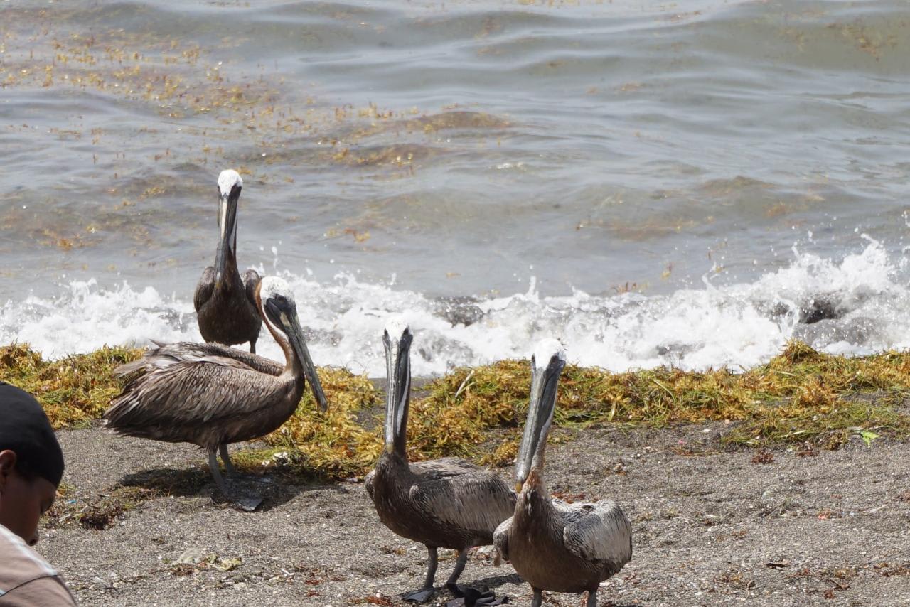 「左手に見えるのが黒砂海岸です。フィッシャーマンもいます。ペリカンもいます」