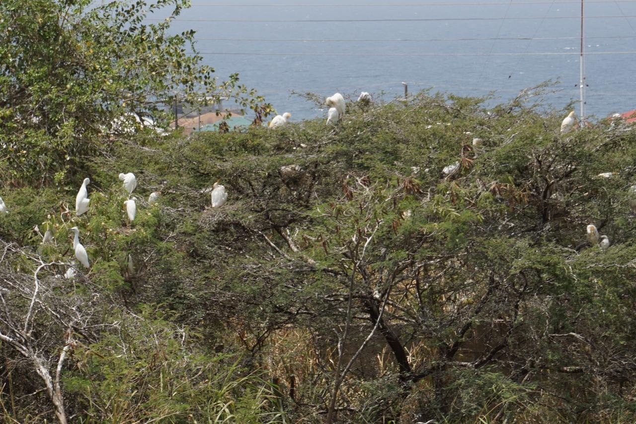 この木だけ鳥が集まっていて白い実みたい。