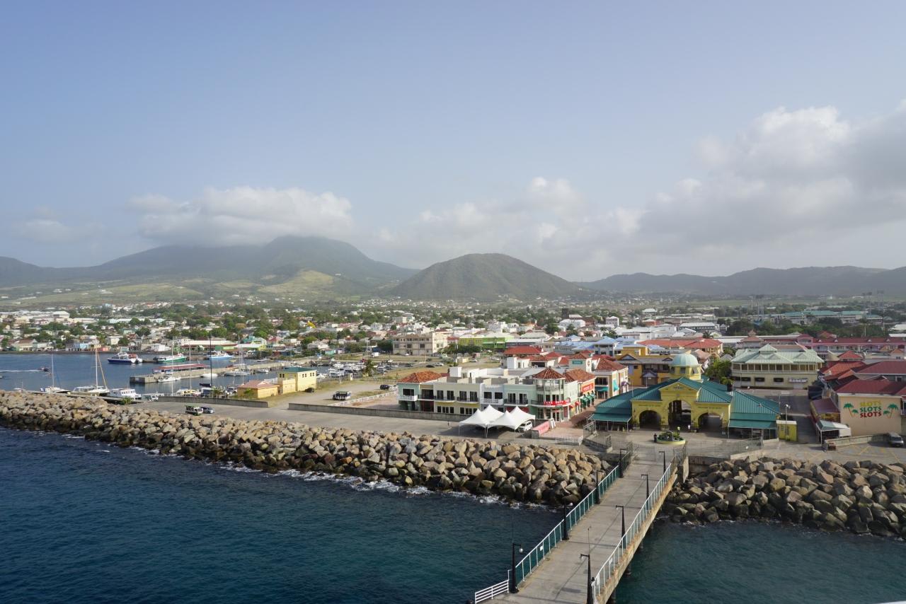 小アンティル諸島・西インド諸島(リワード諸島)・セントクリストファー・ネイビスの首都、セントクリストファー島のバセテールに到着です。