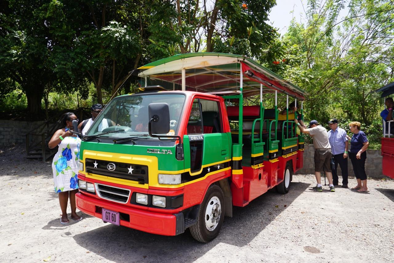 港を出た所で営業活動をしていた改造ピックアップトラックで島内観光に参加しました。