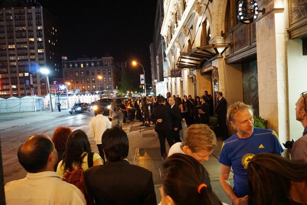 テレビカメラもインタビュアーもいるし、本物のパパラッチも大勢います。