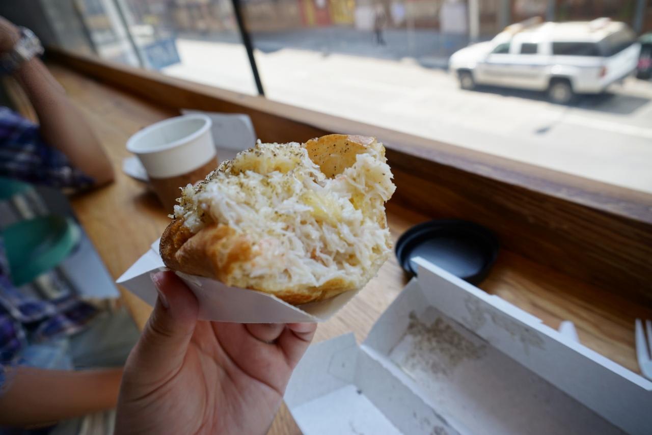 たっぷりのバターでトーストしてあり、食べるとカニやロブスターのうまみとバターがじゅわぁぁぁぁぁぁ。