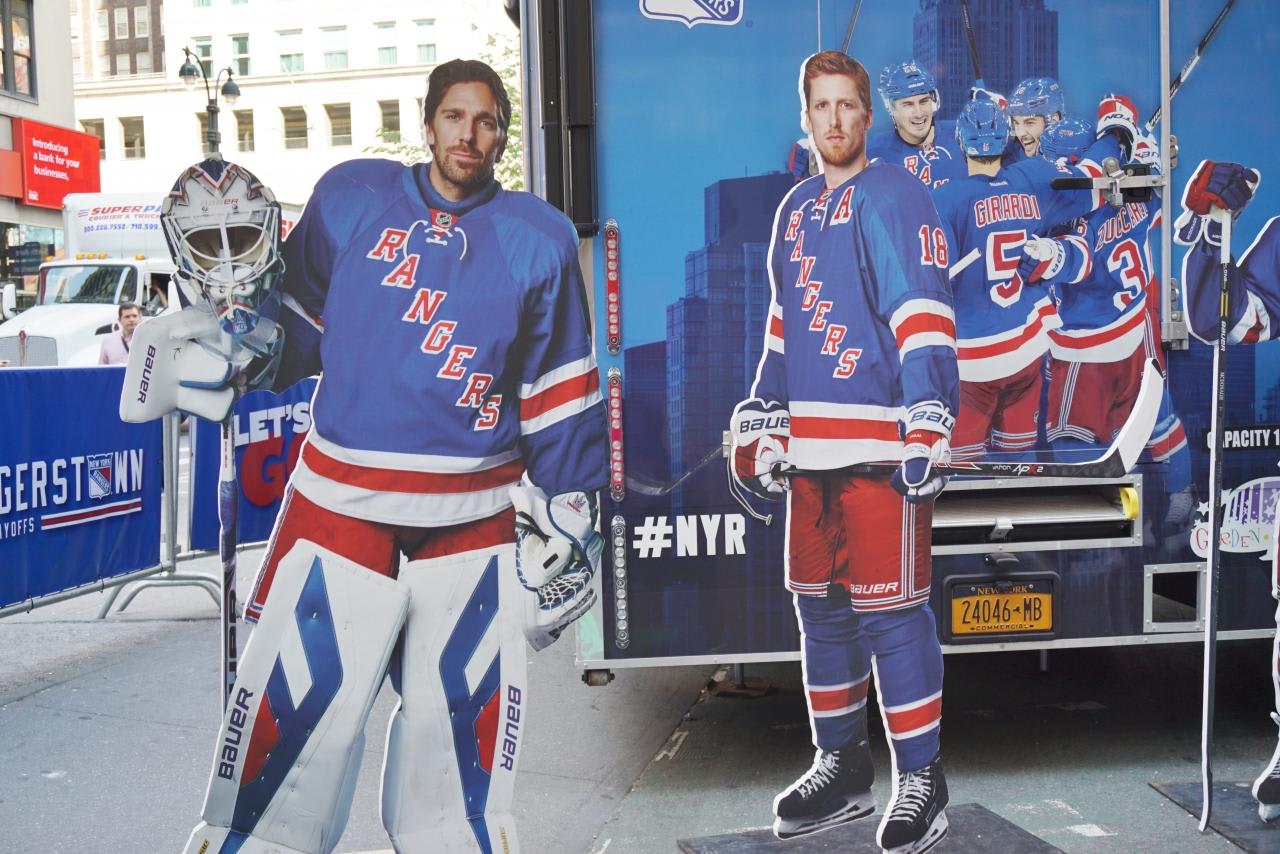ヘラルドスクエアではNYレンジャーズのパブリックビューイング。