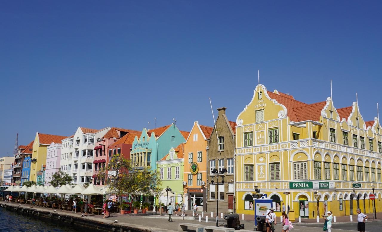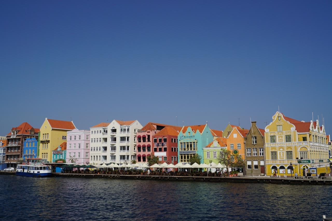 青空に映えるこの色とりどりの家はウィレムスタッドのシンボルです。