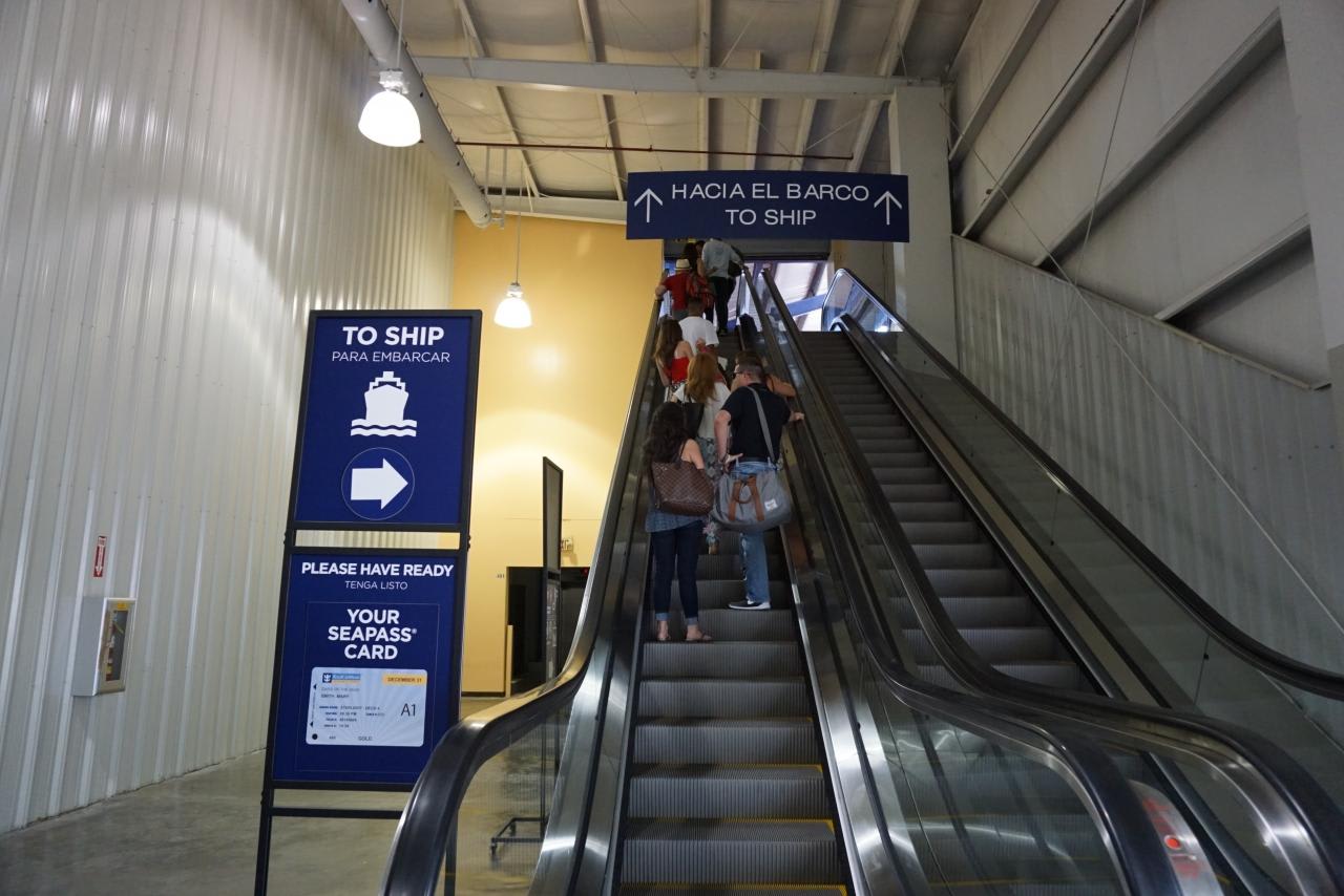 船へはエスカレーターで向かいます。