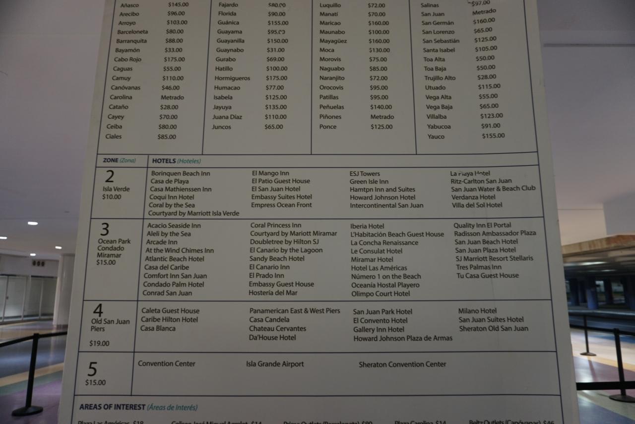 南カリブ海の玄関口、サンファン国際空港からホテルエリアへのタクシーは料金が決まっています。