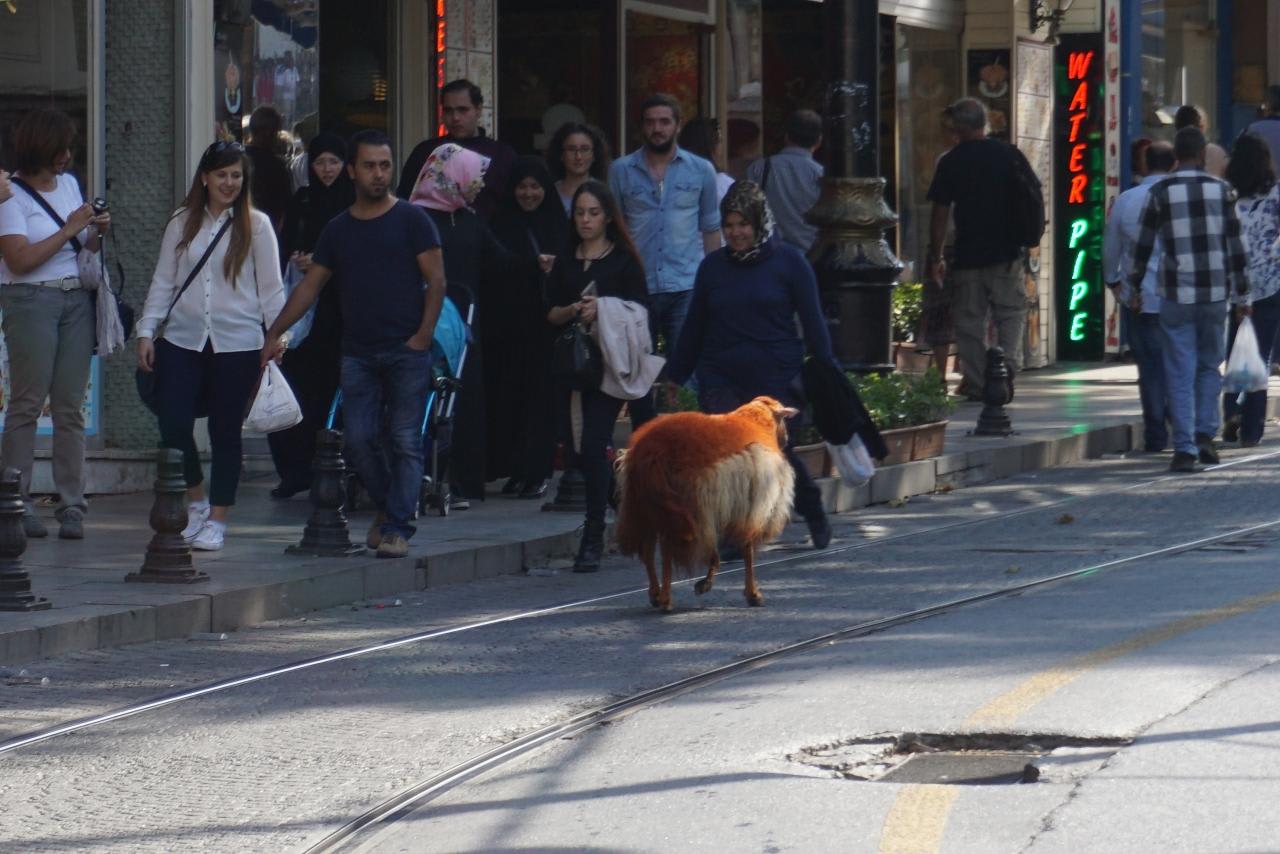 1日歩いて疲れてるのに「歩きたい」という母の意向でトラムヴァイの通りを歩いているとなぜか羊が・・・・