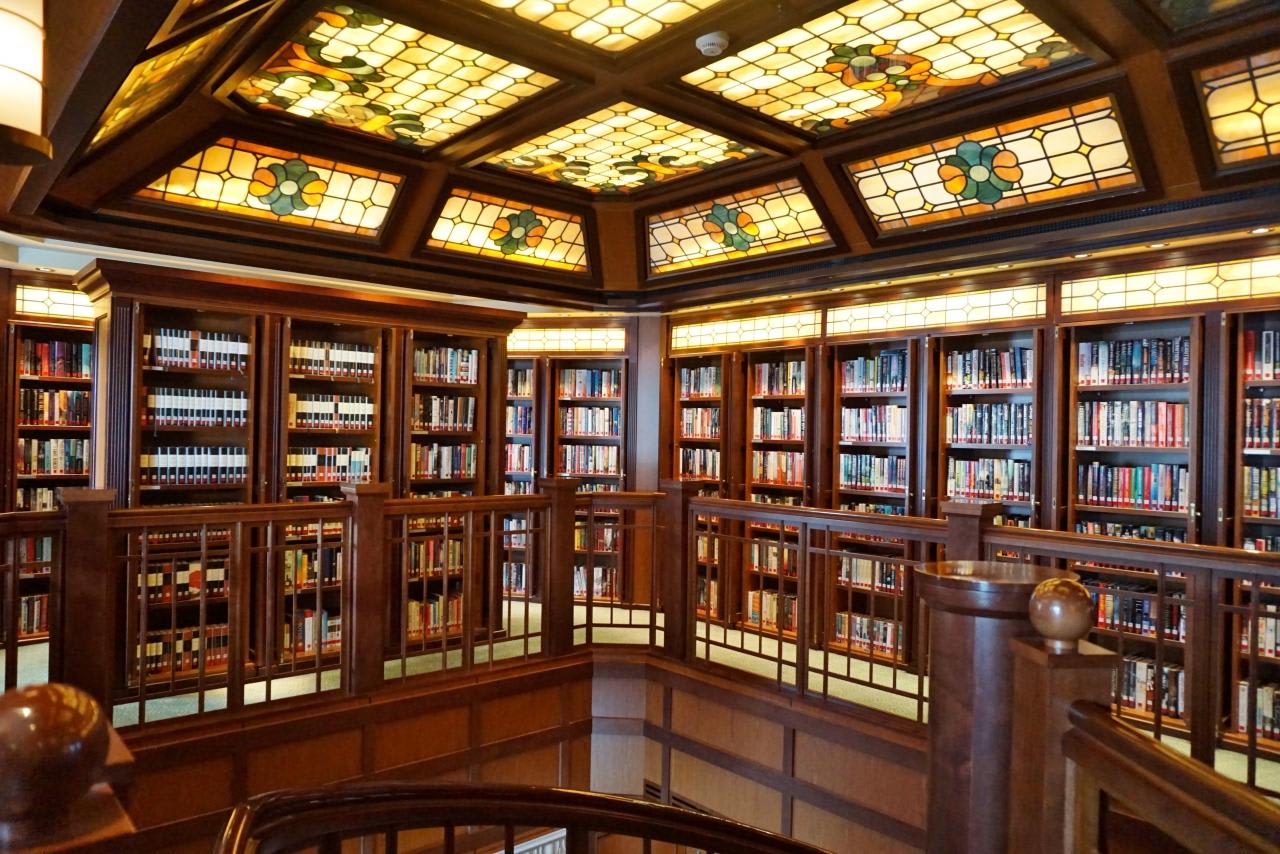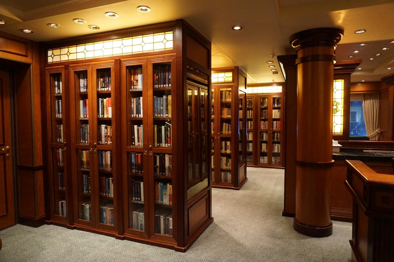 船内ライブラリーは蔵書の数もさることながらこのデザインと螺旋階段がとても素晴らしかったです。