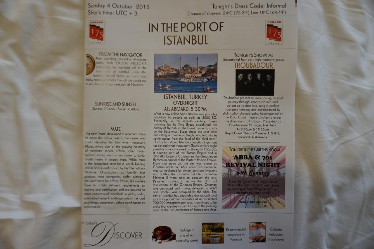 この時はイスタンブールで乗船したファーストシーティングの人だけだったので少なめでした。