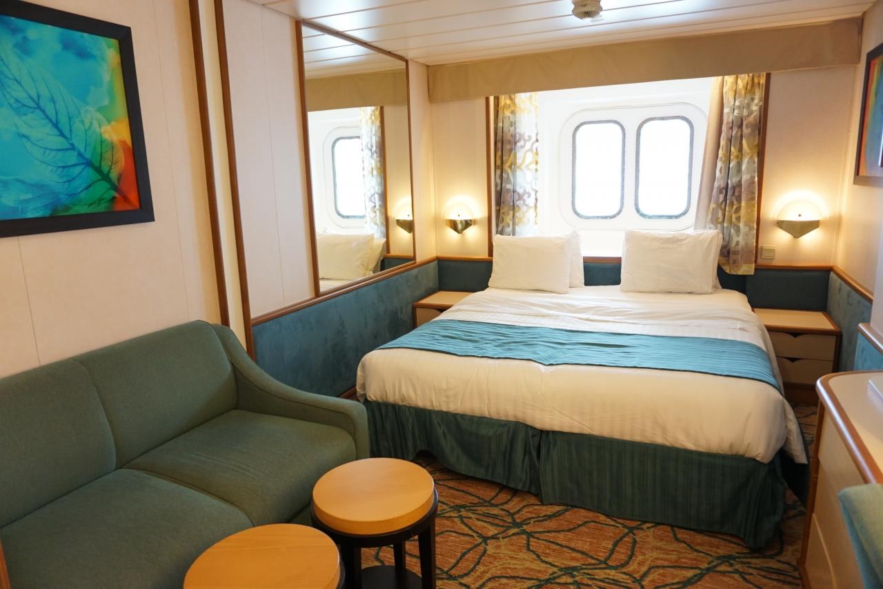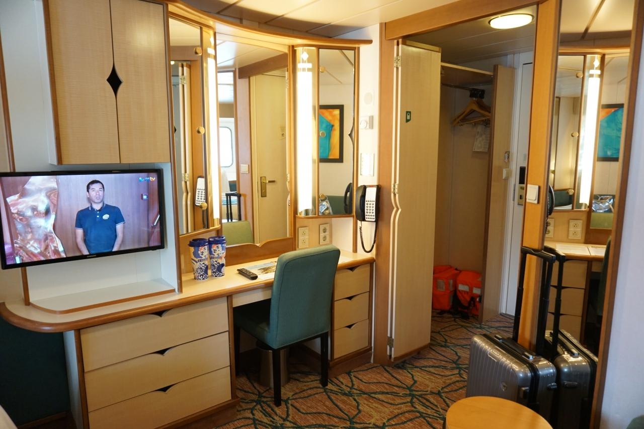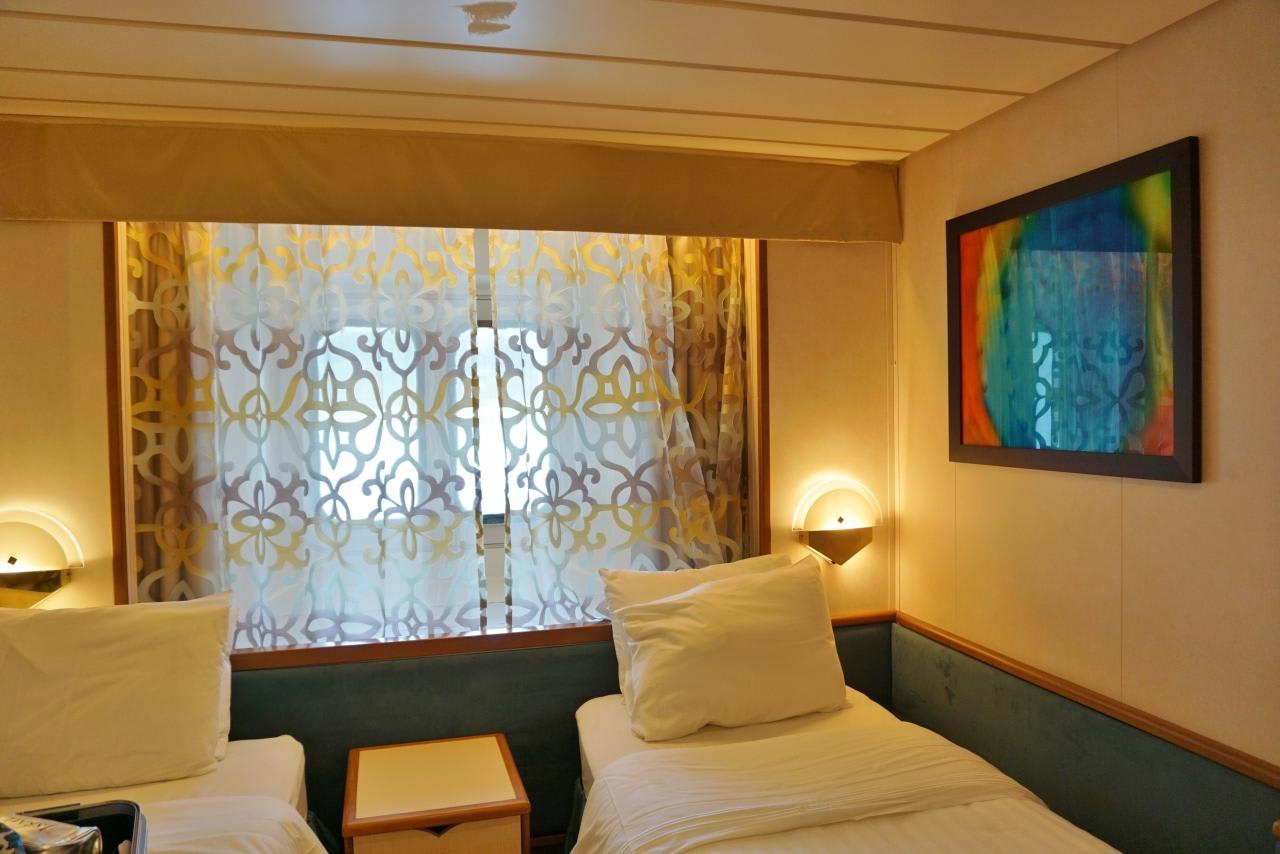 何故かベッドがダブルなのでこの後キャビンスチュワードにお願いしてツインにセッティングし直してもらいます。