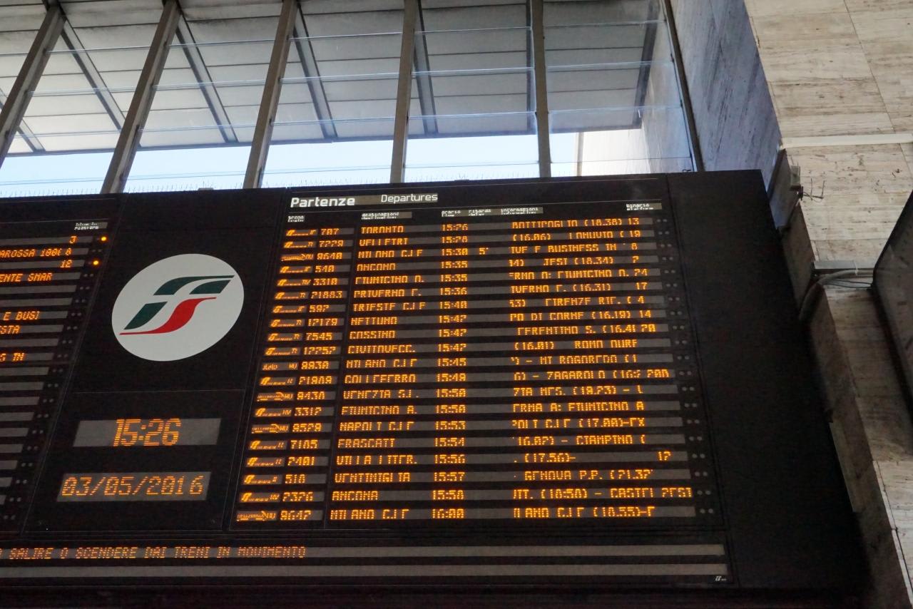 テルミニ駅、3年前と違ってチケットを持ってる人しかホームに行けないようになり、チケットを確認するゲートを通るようなタイプになってたためここでちょっと時間がかかり面倒な結果に。