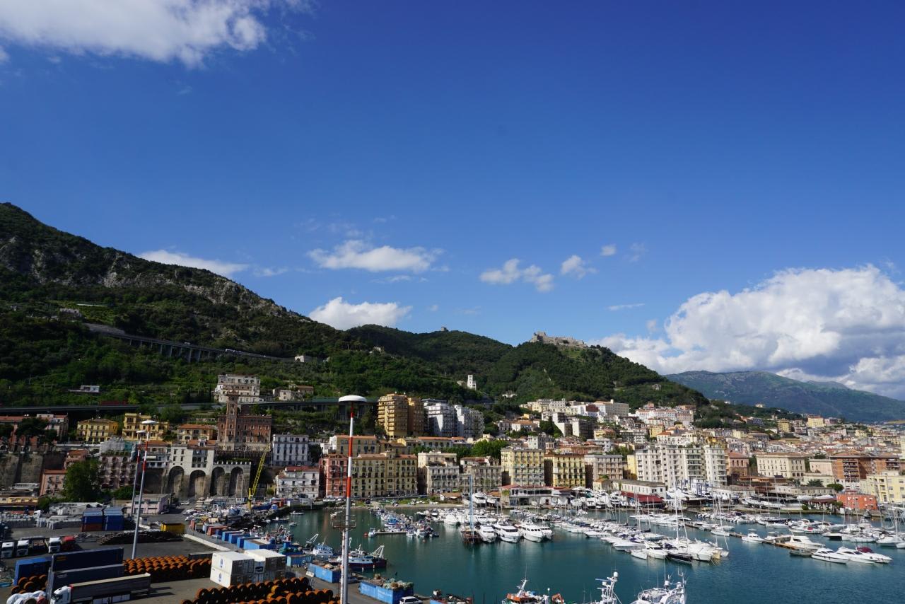 私は大好きなデッキからプールやサレルノの景色を楽しみます。