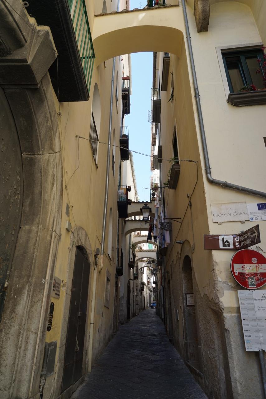 サレルノも裏通りはとても狭く、歩行者専用の道が殆ど。