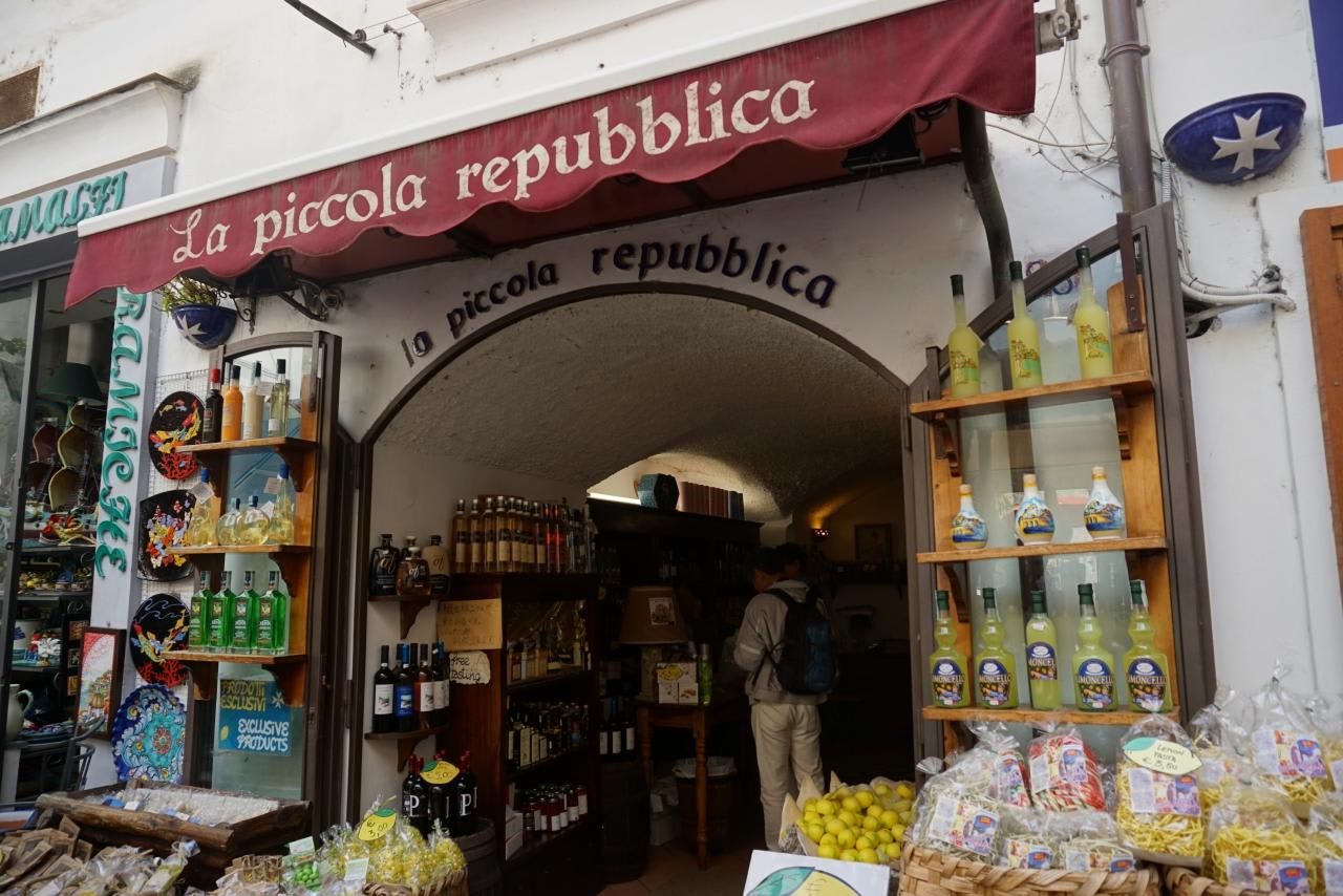 特産品のレモンを使ったお菓子を売ってるお店でアマルフィのお土産を探します。