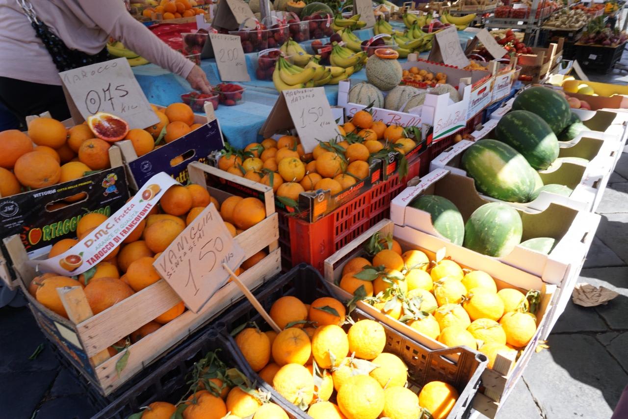 お昼前にカルロ・アルベルト広場の青空市場に到着。