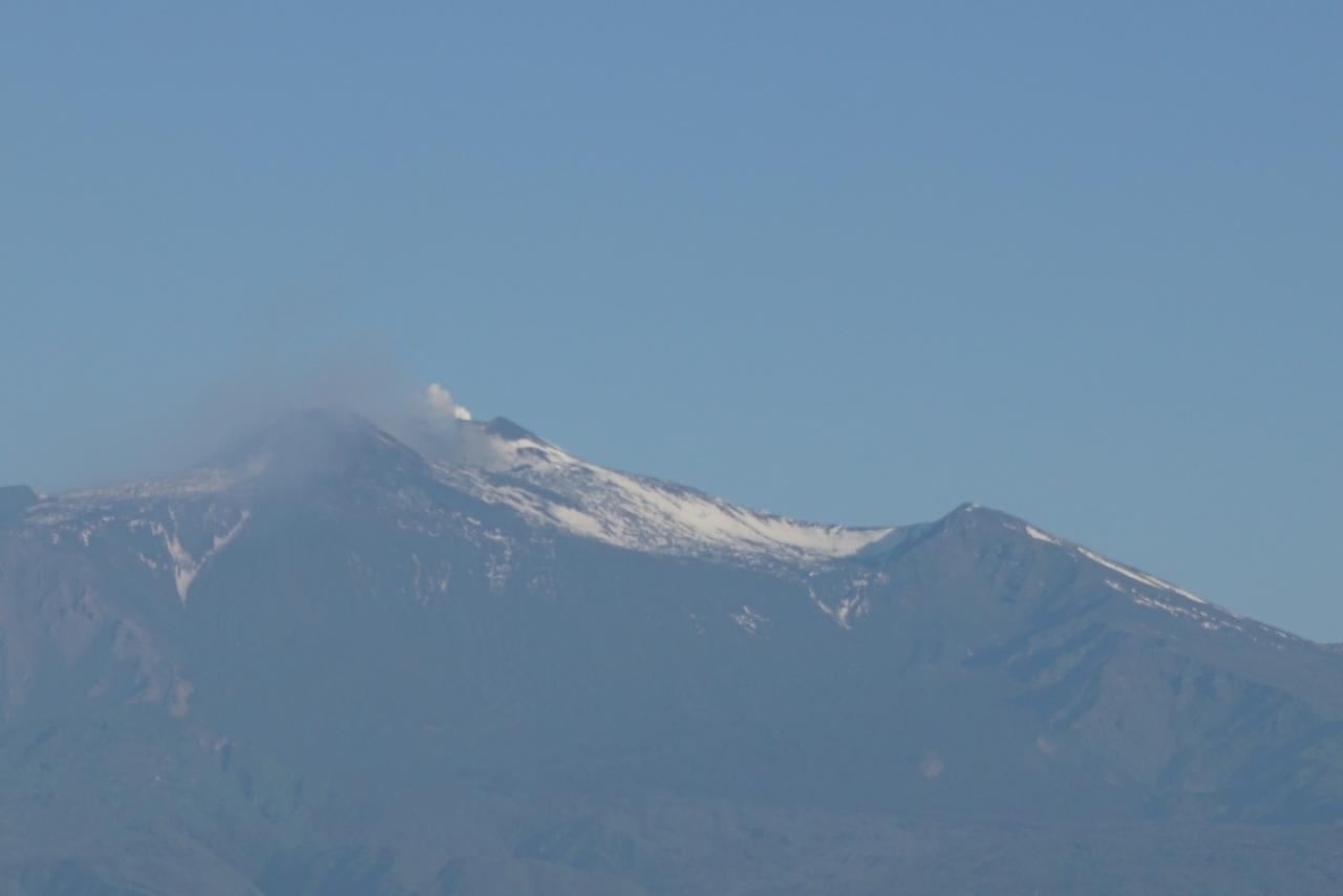 エトナ火山から延びる一筋の白い線は雲ではなく噴煙です。