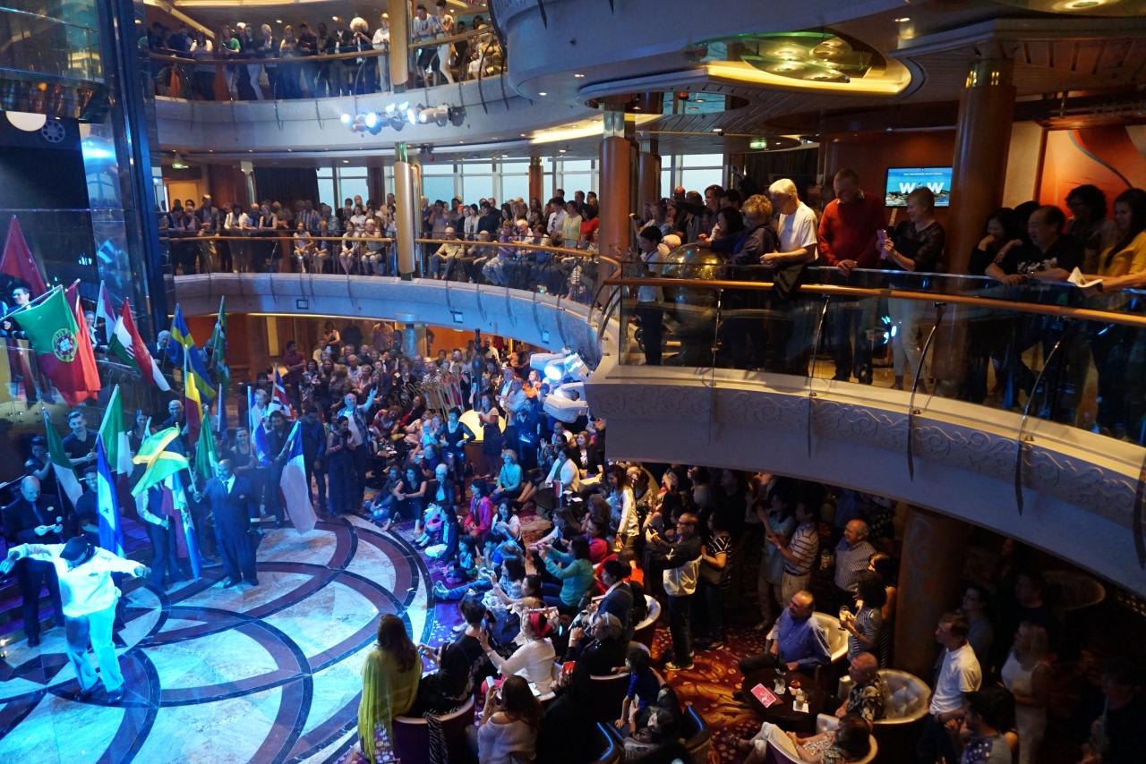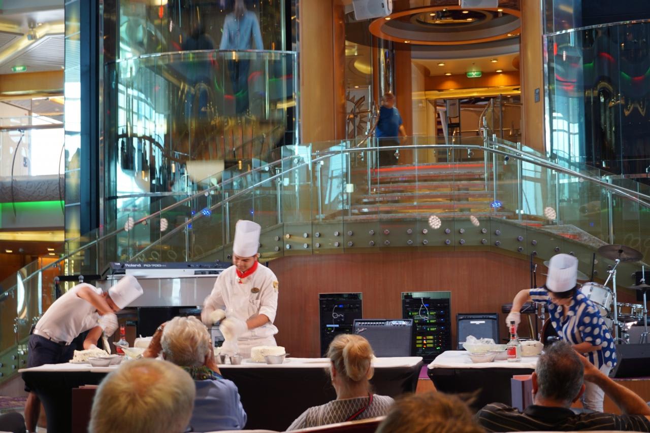 イベントに参加してショーを見て美味しい物を食べて船内を散策。