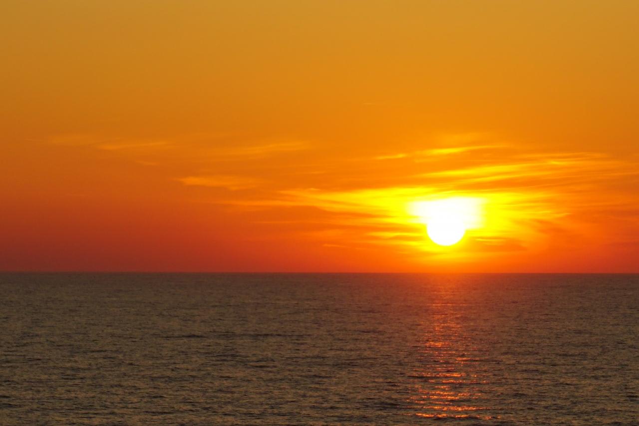 船からの最後の夕焼け。