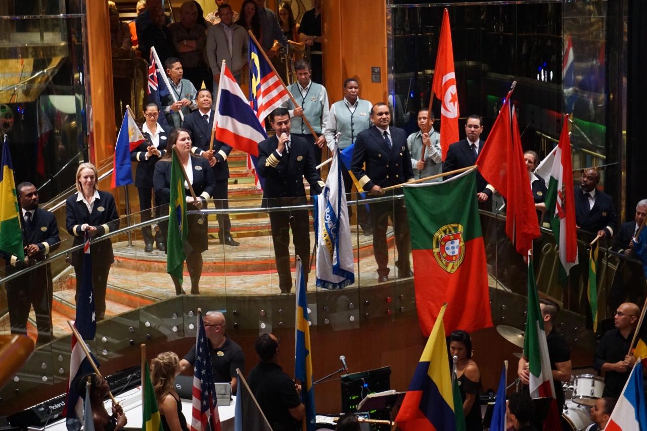 60を超える国から集まるクルーが自分の国旗をもって民族衣装やダンスを披露。