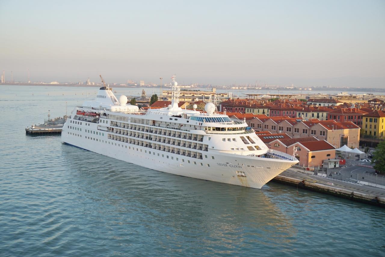 これぞ豪華客船のシルバーシークルーズのシルバークラウドが停泊していました。