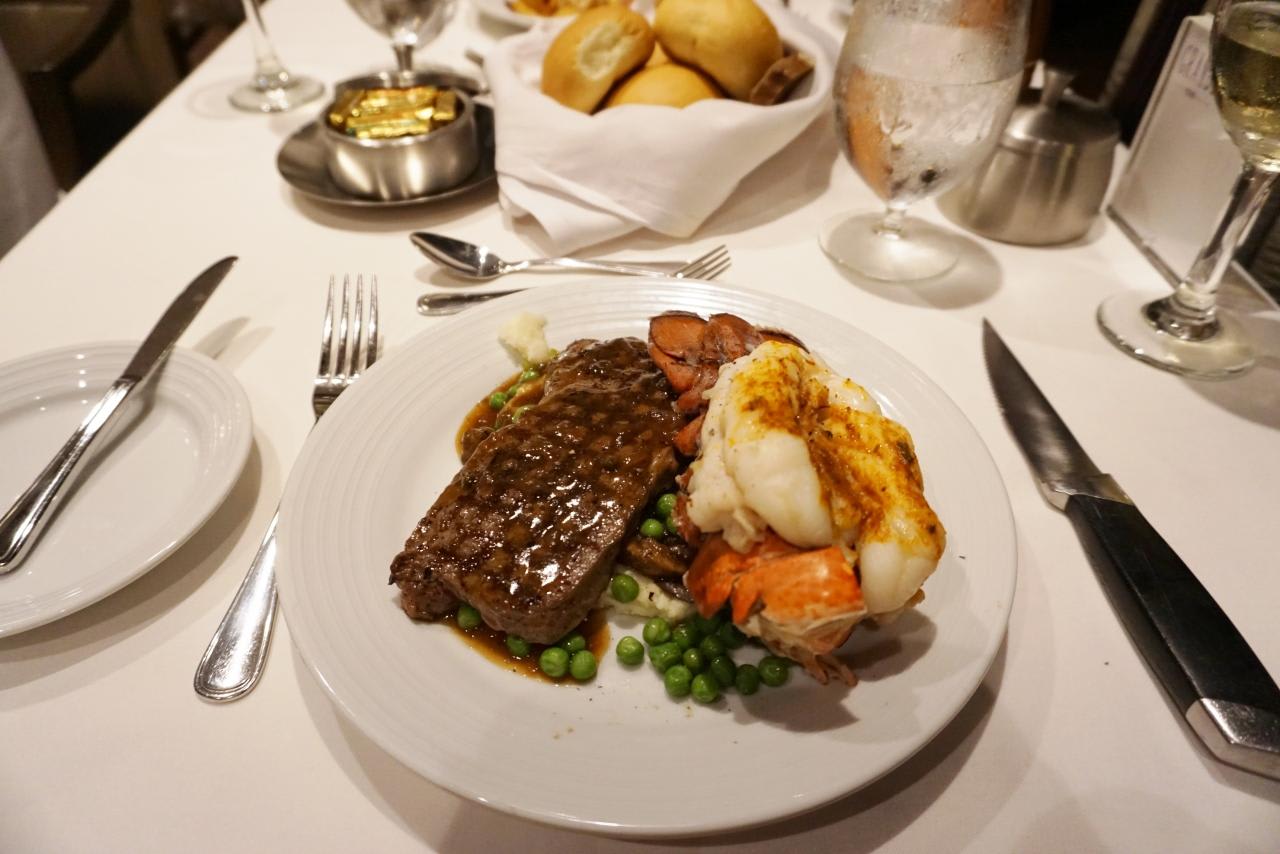 夫はサーフ&ターフ(といってもサーフの方はロブスターではなく単なるエビ)を注文したけど、「ロブスターにしておいたよ♪」とサービス。