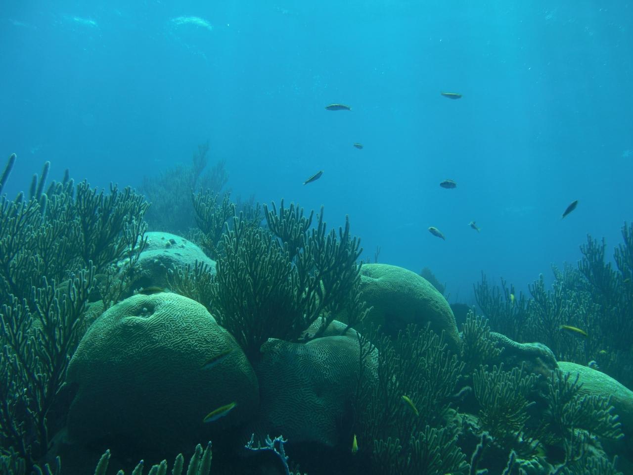 比較的浅いサンゴ礁と魚が沢山いる所を進んでいきます。