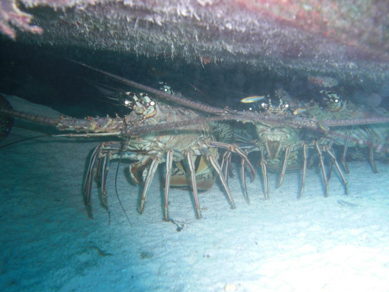 フェリーの下には大きな伊勢海老が生息。