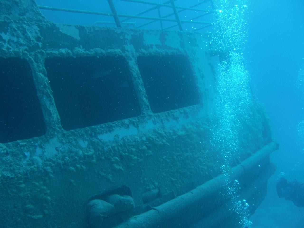 残念なことにダイバー用に沈めた使い古されたフェリー。