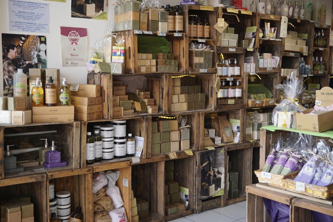 オリーブオイル、レモン、ラベンダー、天然の海綿を使ったバスグッズなんかもお土産に良さそう。