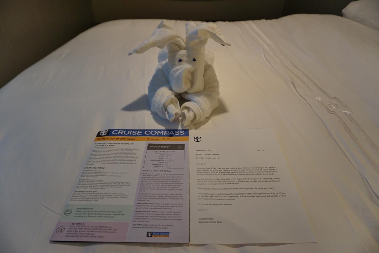 部屋に戻るとターンダウンではお決まりのタオルアート。