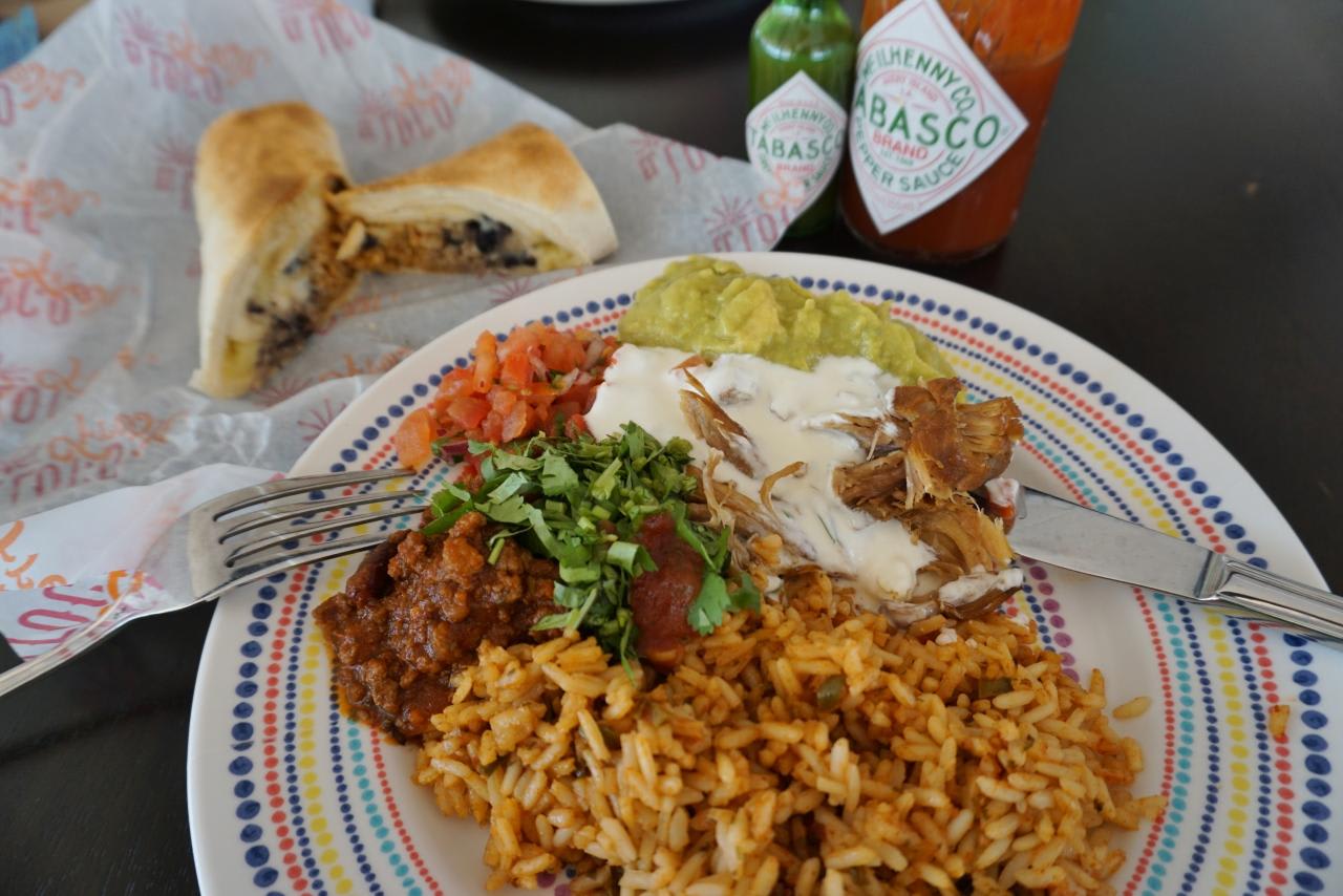 ブリトー、トルティーヤ、メキシカンライス、チキン、ビーフ、チリコンカン等々。