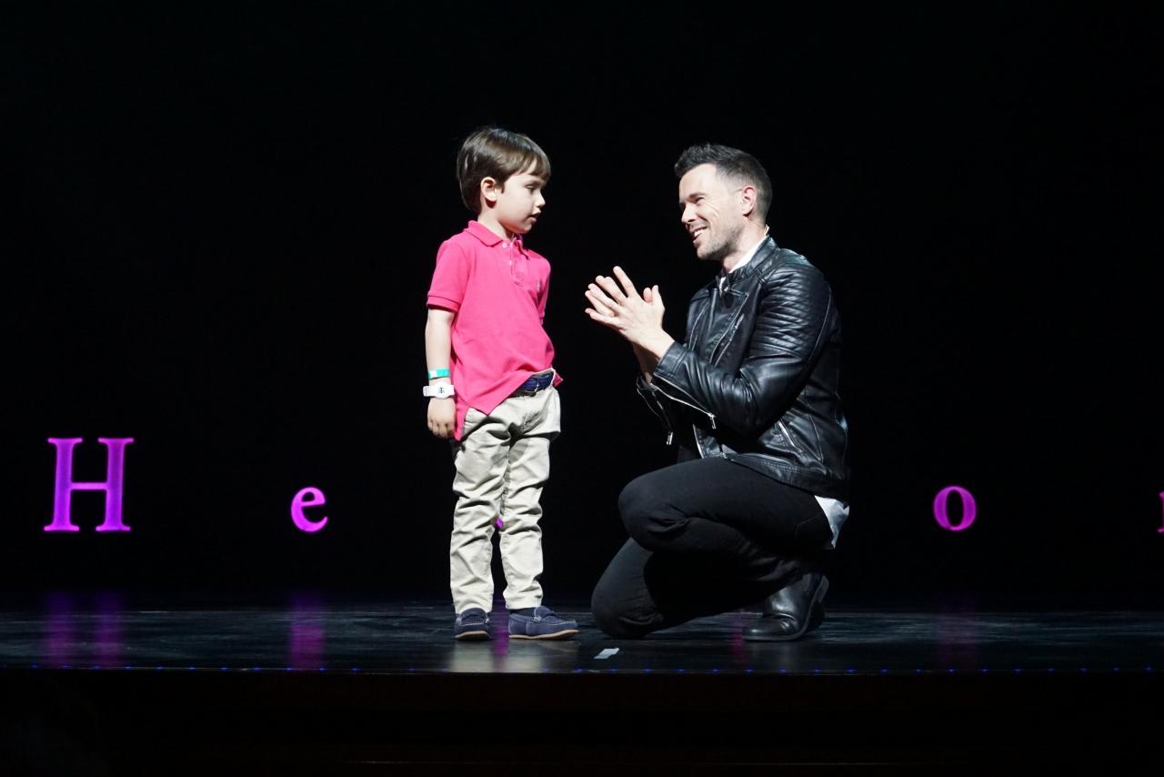 1列目に座っていた子供を舞台に上げてショーのお手伝いをしてもらうんだけど、緊張のあまりシャツを引っ張り上げて脱ごうとしちゃう可愛い男の子。