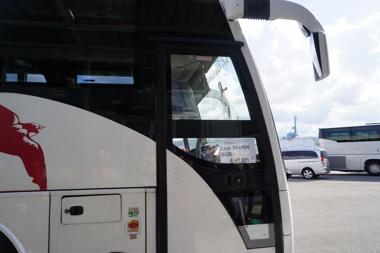 そんなわけで事前にショア・エクスカーションデスクで船会社のシャトルバス往復$18を予約しておきました。