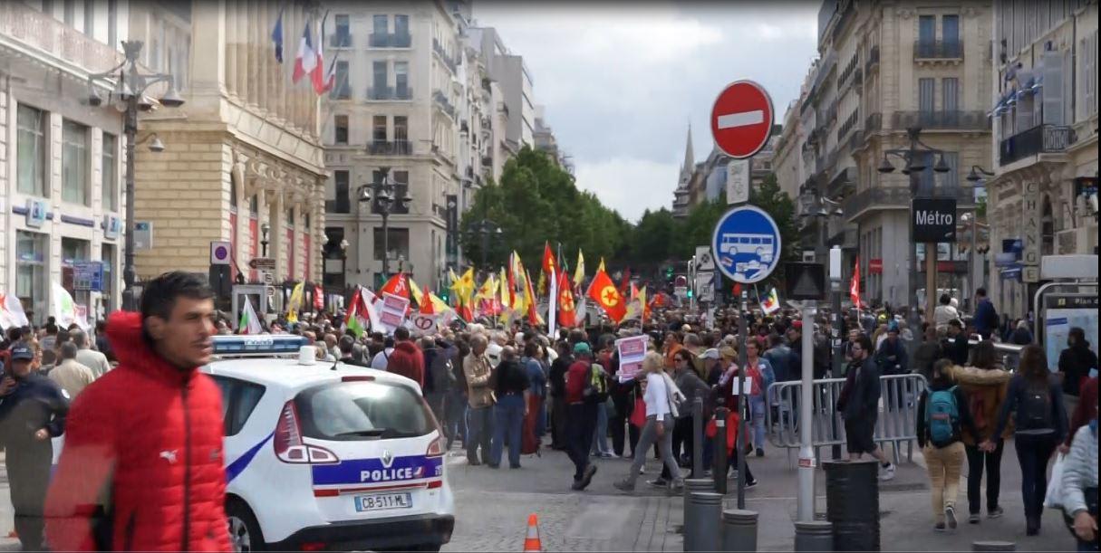 ガブリエリ・ペリ広場を通ったら旗持った人達が沢山いて、「お祭りだー!」と思ったらデモの真っ最中。