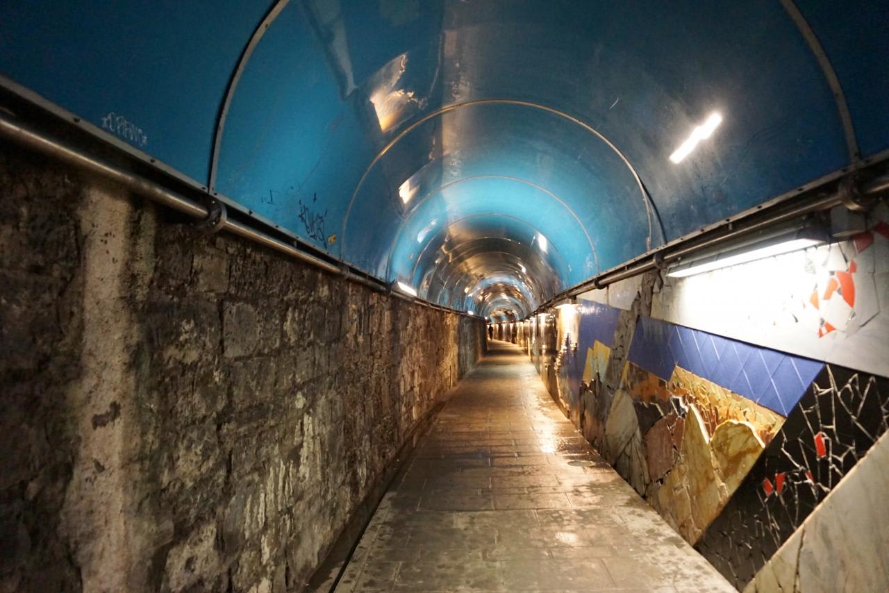 出口が見えないくらいかなり長いトンネルだけど、傘をささなくていいので有難い。