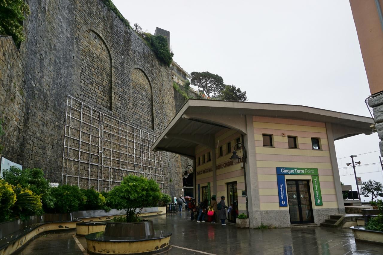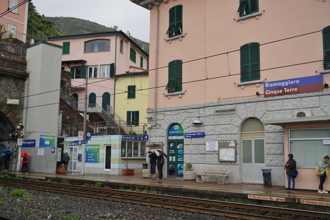 雨のリオマッジョーレ駅に無事到着です。