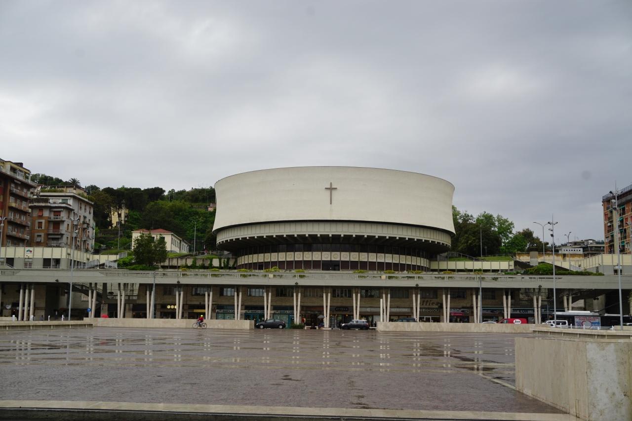 ターミナルからの乗車ポイントは丸い教会のすぐ前のVia Vittorio Veneto(ヴィットリオ・ヴェネト通り)。