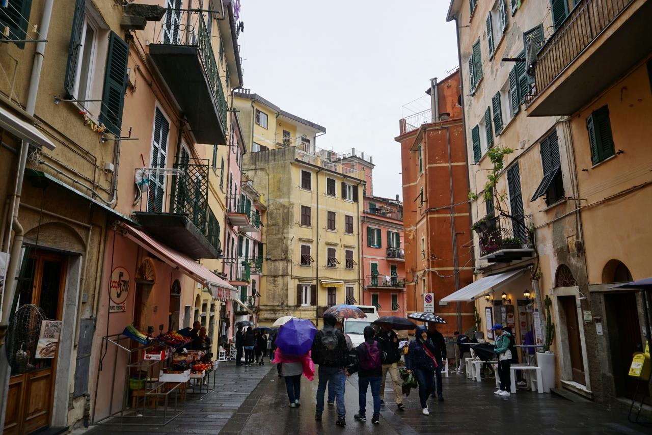 傘さしての観光は嫌だけど、とりあえず下船してみようということになり、結局そのまま「ここまで来たのだから」とチンクエテッレに行くことにしました。
