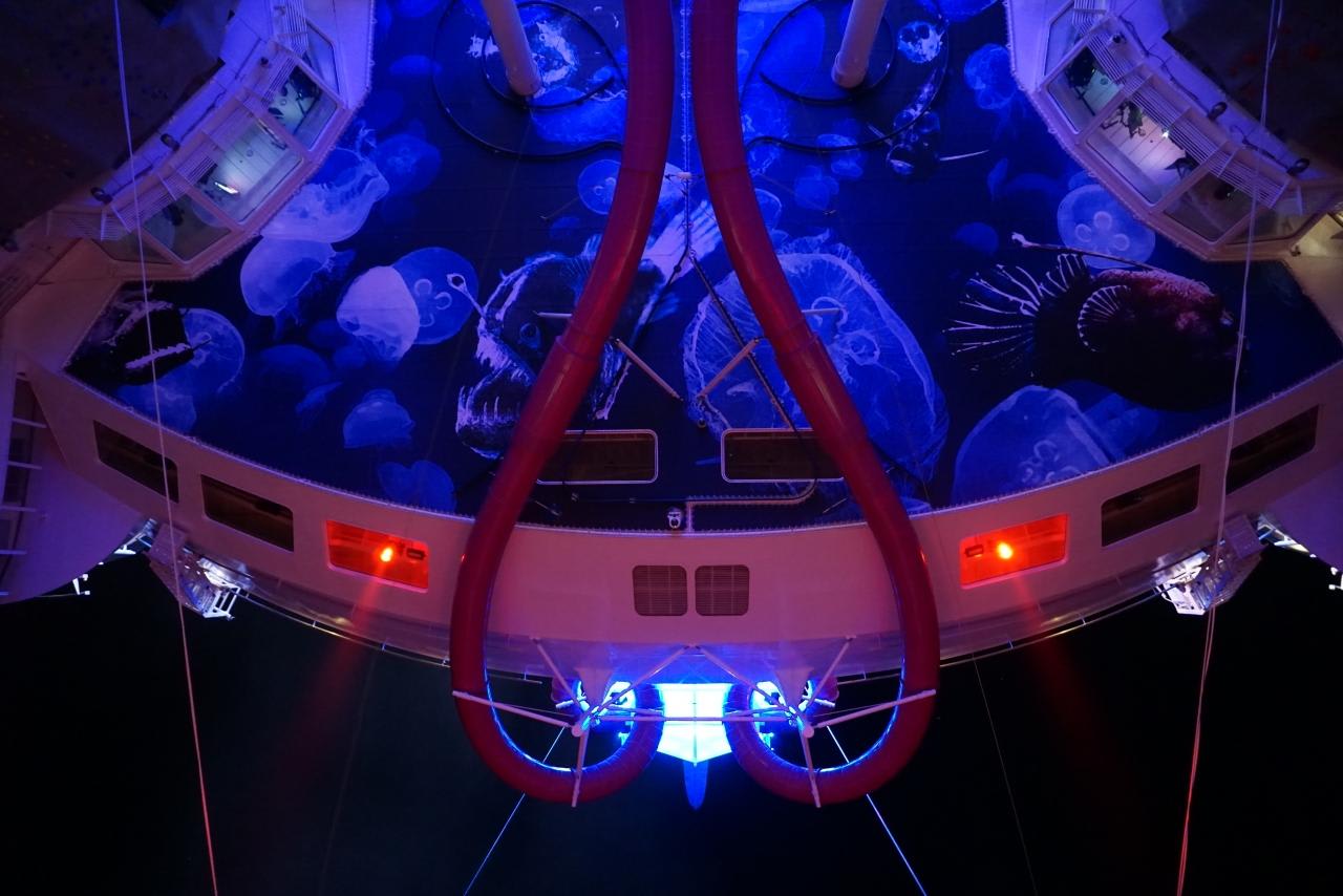 宇宙空間を浮遊しているような不思議な滑り台です。