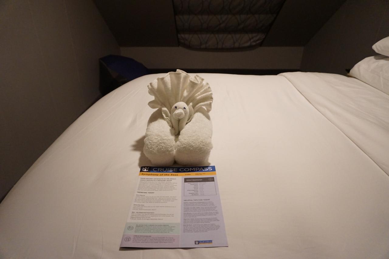 ベッドでは謎のタオルアートがお待ちかね。