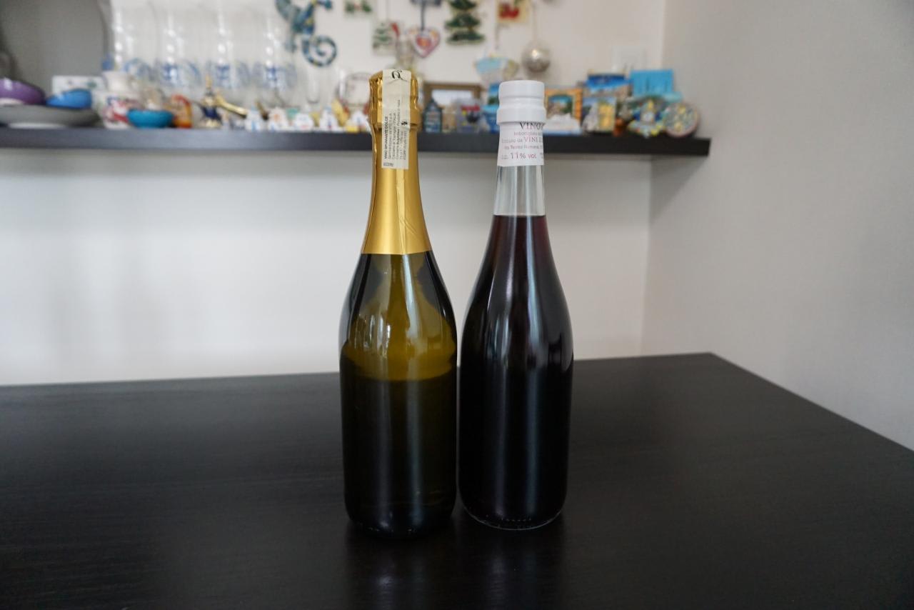 左はスパークリング、右は赤ワインかと思ったら微発泡のワインでした。