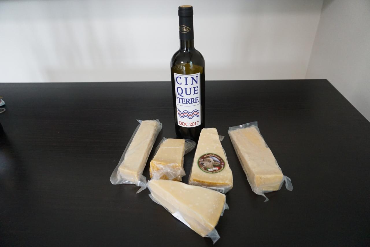 ラ・スペツィアのスーパーで買ったチンクエテッレワイン(白)とパルミジャーノ・レッジャーノ。