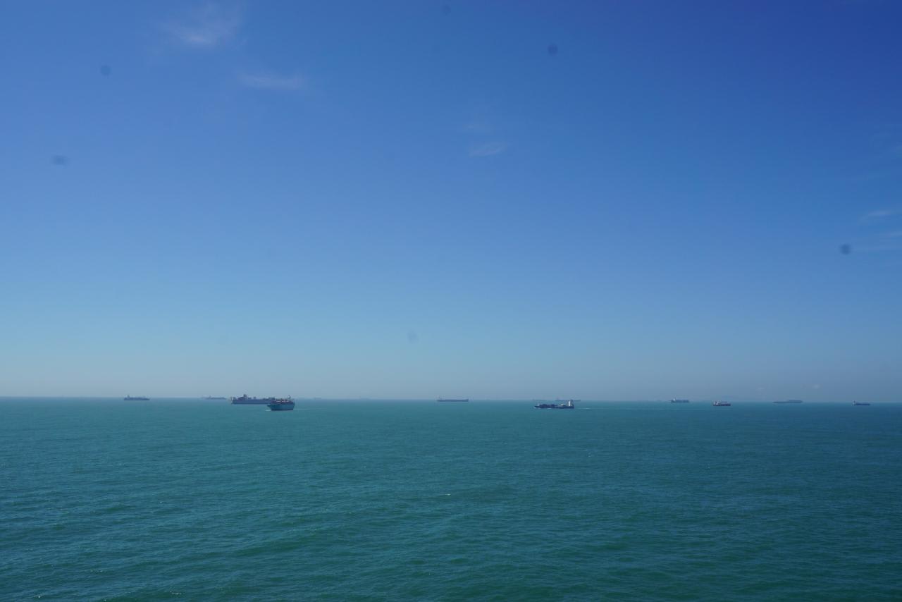 大型客船はいないけど、コンテナ船が山ほどいます。