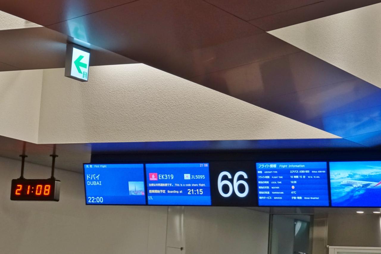 カフェでひたすら時間を潰し、搭乗1時間前にモニターを確認するとゲートがBに変更になってる・・・