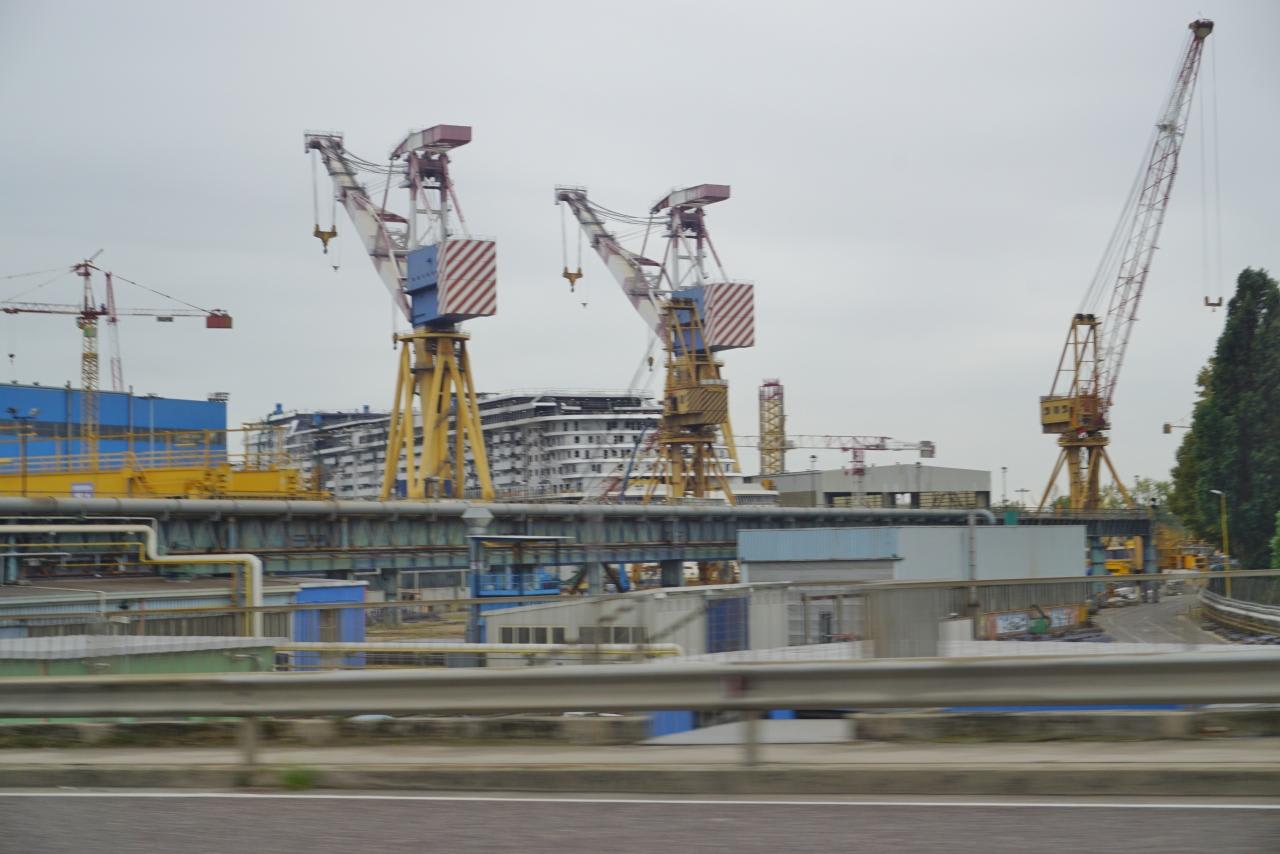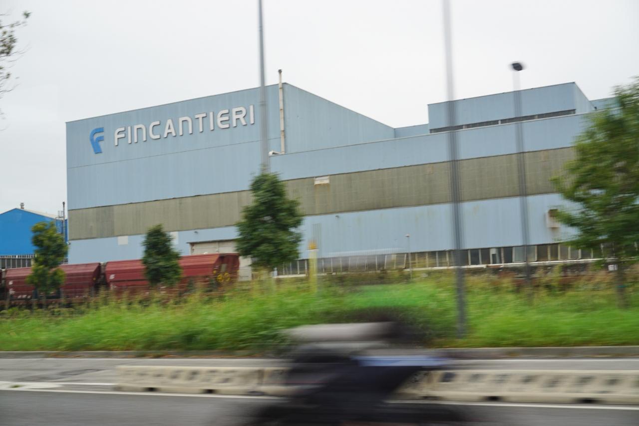 本島からリベルタ橋を渡ってマルゲーラについた所で左側に出てくるフィンカンティエリのマルゲーラ造船所。