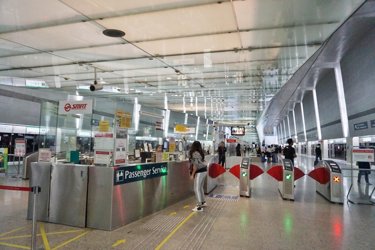 東西線でタナメラで1回乗り換え、さらにラッフルズプレイスで南北線に乗り換え。
