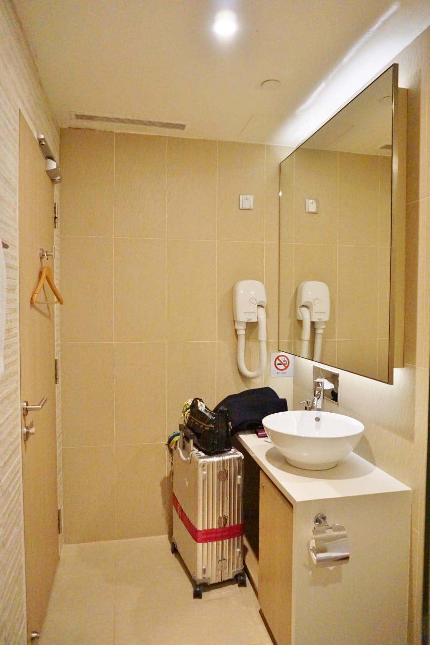 Mサイズのスーツケースを開くほどのスペースはないので片面だけ開ける感じでバスグッズと着替えを引っ張り出します。