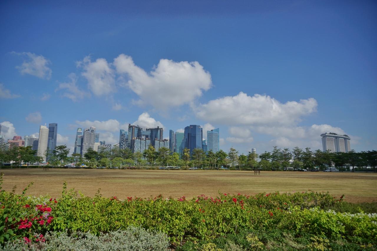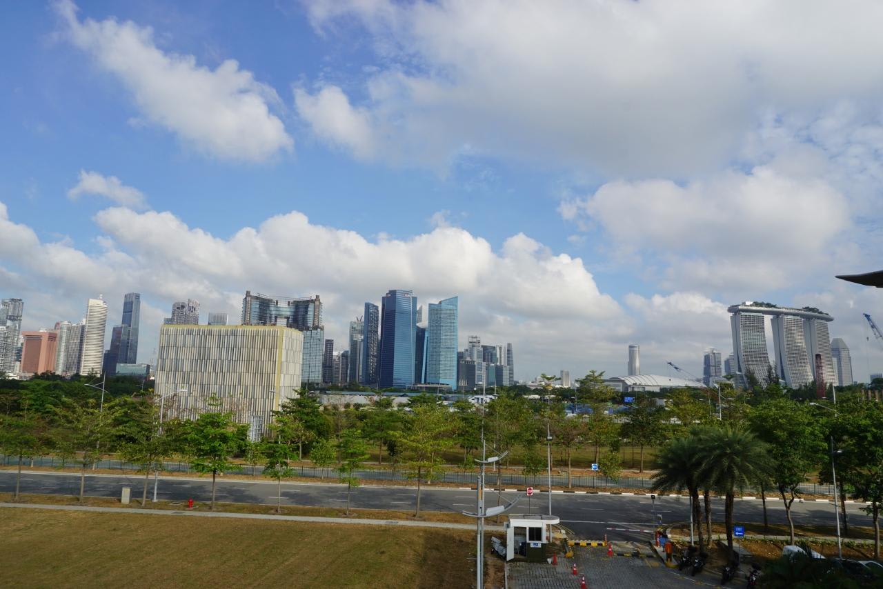 抜けるような青空とシンガポールダウンタウン&マリーナベイサンズ。