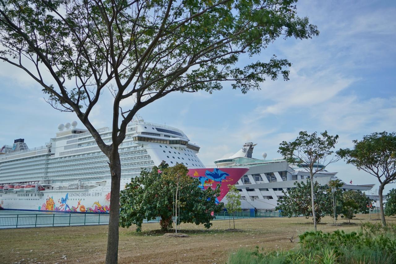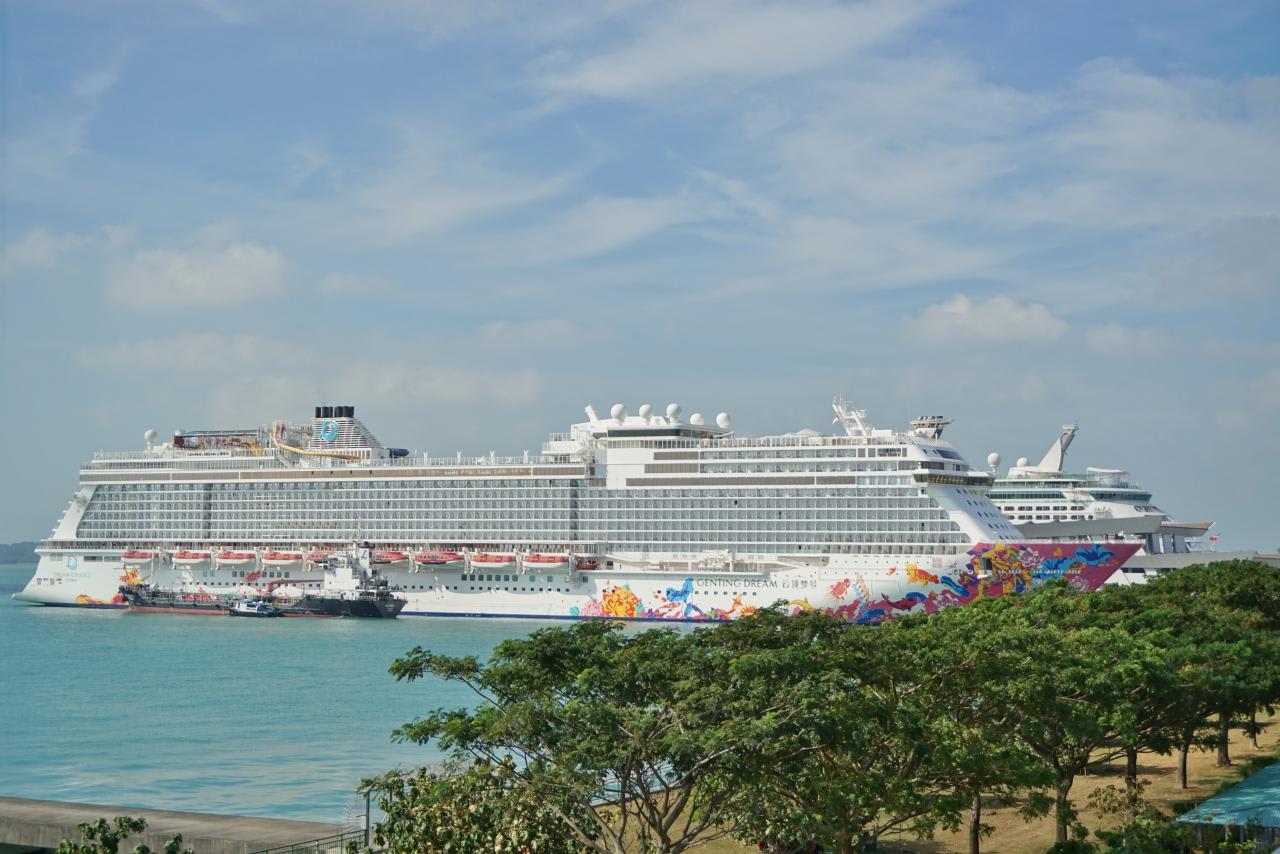 乗船するボイジャーオブザシーズとゲンティンドリームが見えてます。